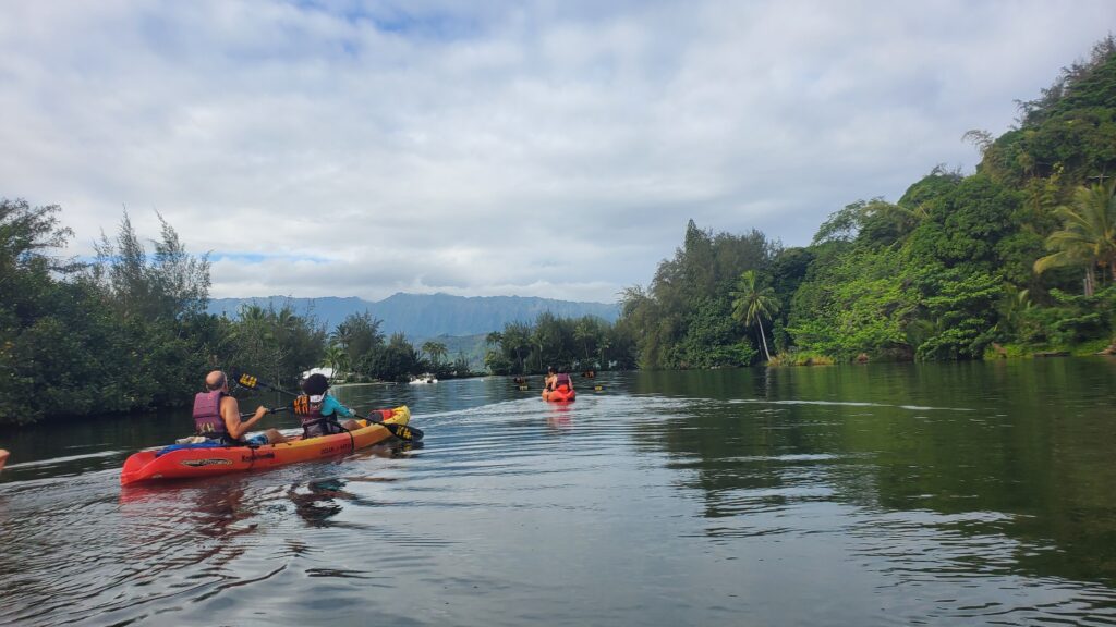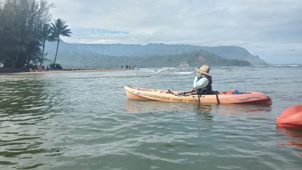 In retrospect, it would be easy – and much cheaper – to rent a kayak from Kayak Hanalei and do this trip independently, as the route is straightforward. (Apparently I had the exact same thought about kayaking the Wailua River, when we did that tour on our last trip.)