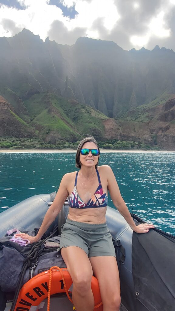 Several days later, for the sake of comparison, I hopped on one of Captain Andy‘s 24-foot Zodiac rafts to see the Nāpali Coast from the water. There are also bigger, more comfortable catamarans that do this trip, but I opted for thrill over chill.