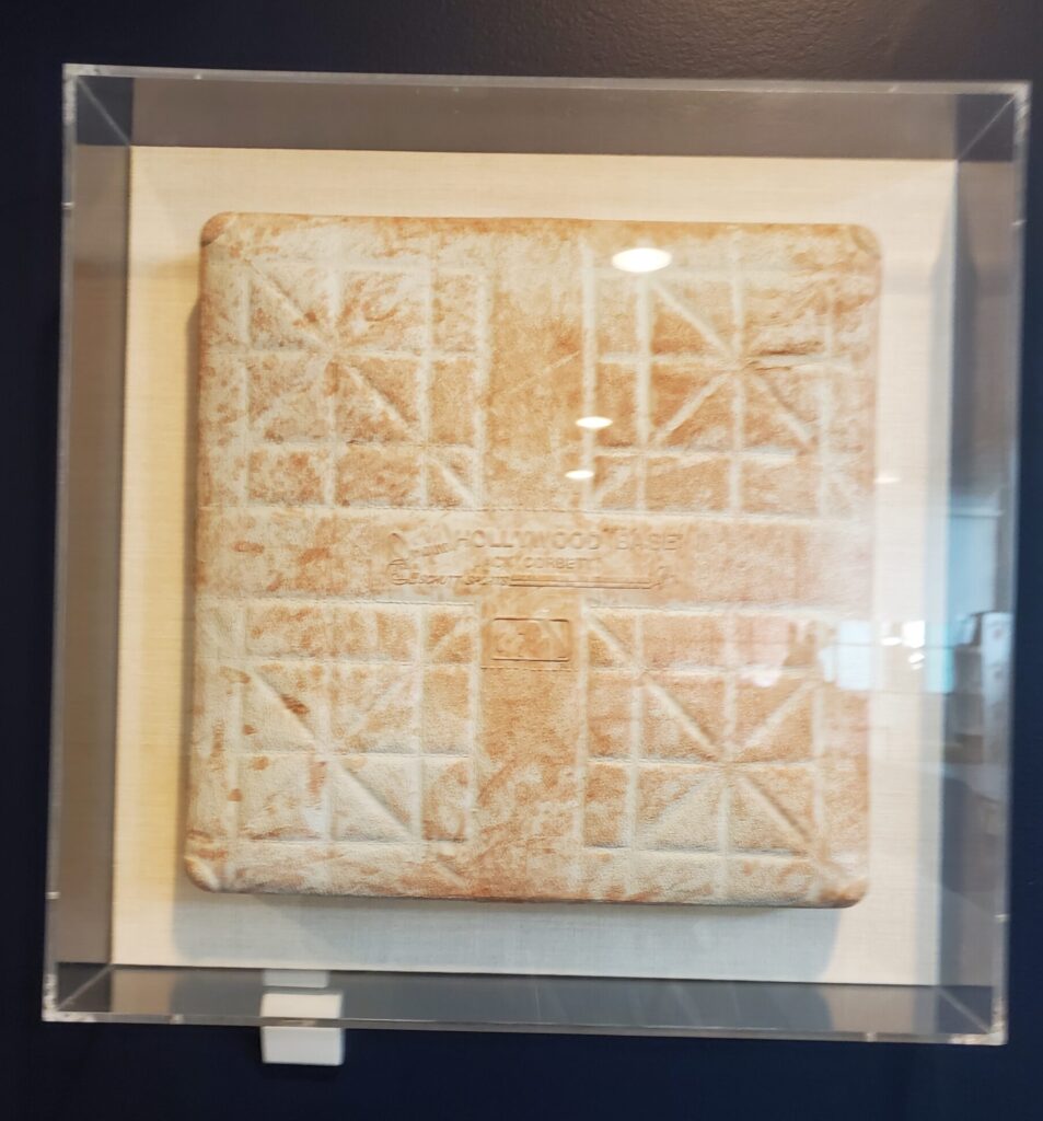 From more recent history, this is Dave Roberts’ stolen base, which is the ultimate symbol of the curse reversed. Roberts successfully stole second base during the 2004 American League Championship, leading to a win against the Yankees and – eventually – a sweep of the Cardinals in the World Series. The base occupies a place of honor in the Royal Rooters Club.