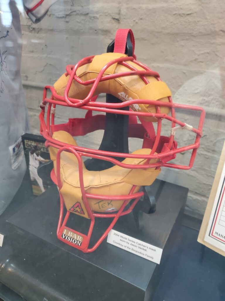 My personal favorite artifact on display was this catcher’s mask, worn by Jason Varitek, star of the 2004 Red Sox in my book. Golden Glove winner, team leader, team captain (one of only four in Red Sox history), and generally the smartest guy on the team. And now part of the coaching staff.
